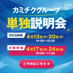 カミチクグループでは27卒~30卒を対象とした会社説明会を開催しております。対面式とオンライ…